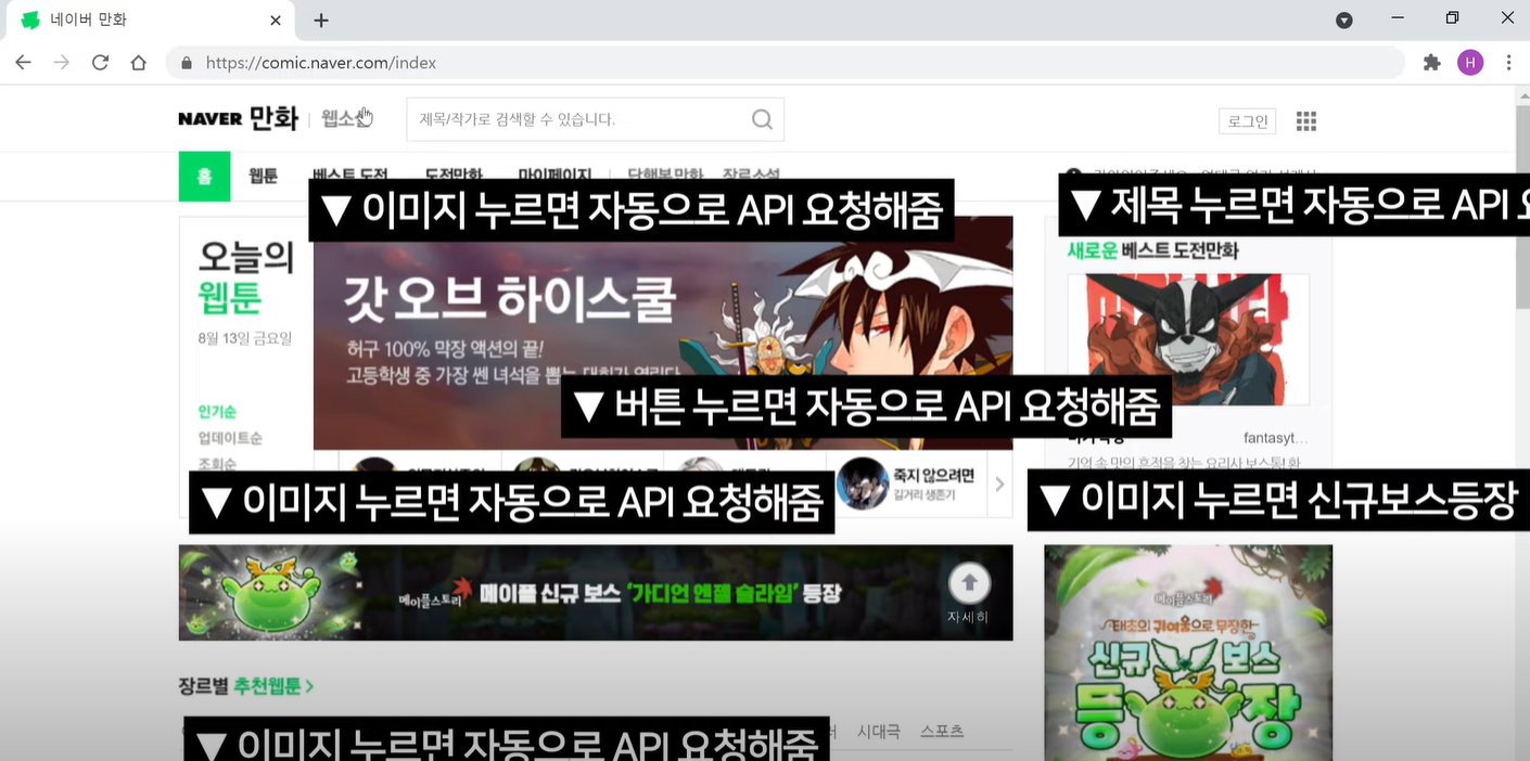 <실제 네이버가 만들어둔 웹툰 API 예시>