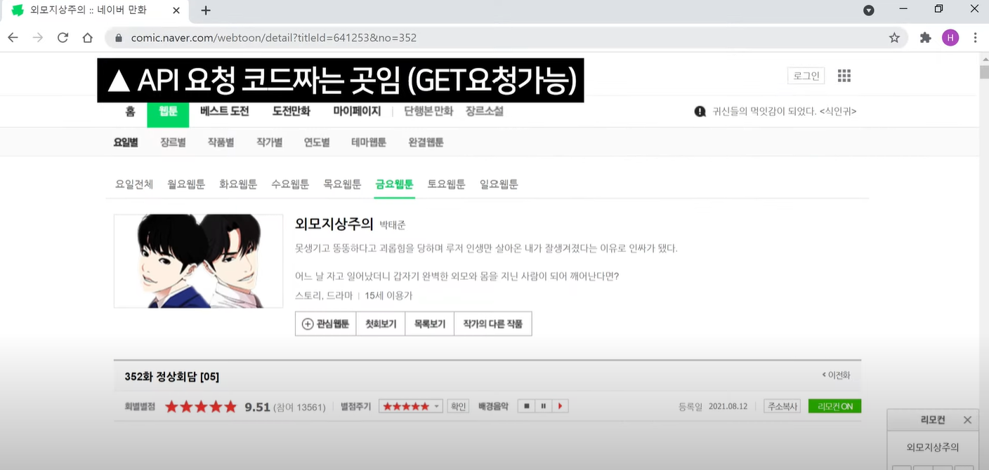(GET 요청) comic.naver.com/webtoon/detail?titleld=318995