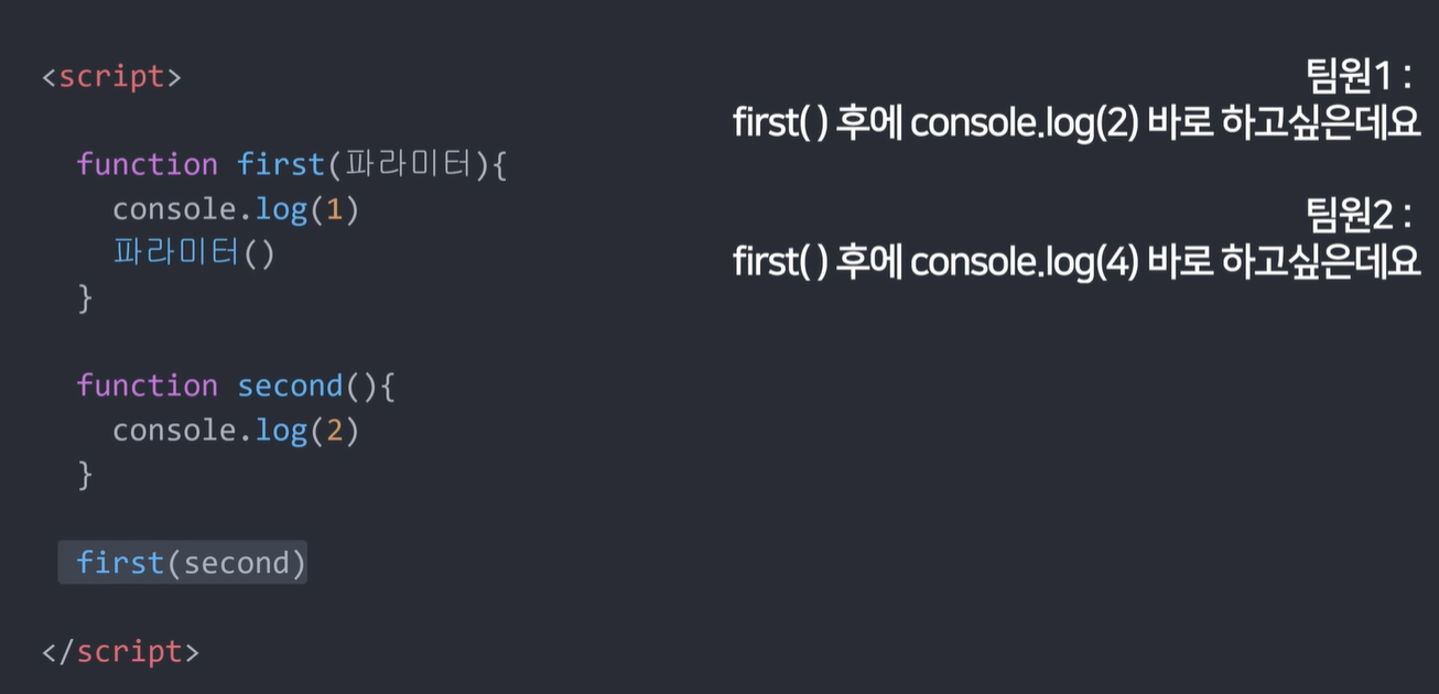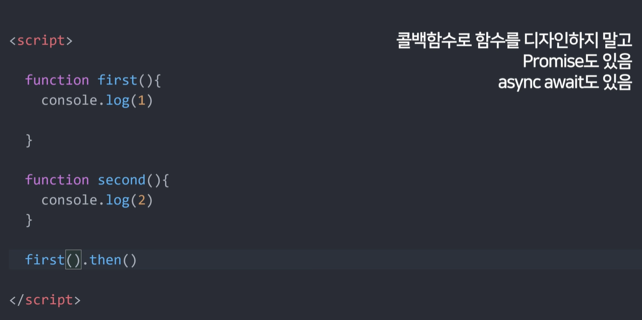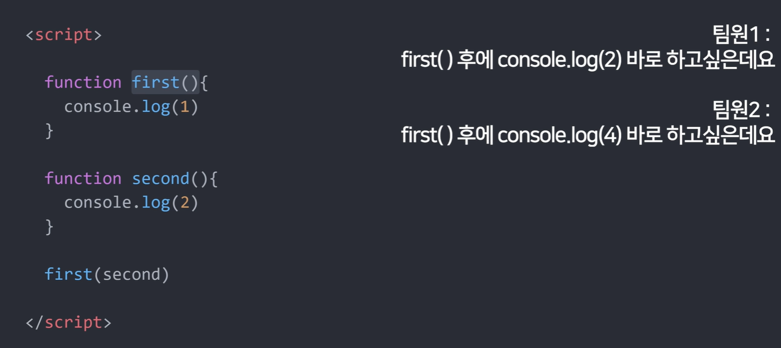근데 그 사람들이 first 함수 쓰다가, first 함수 실행하고나서 바로 console.log(2) 같은걸 실행하고 싶어진거에요.