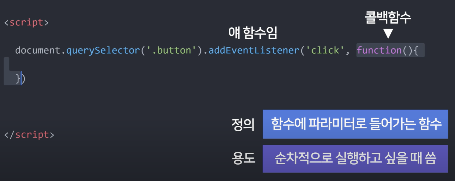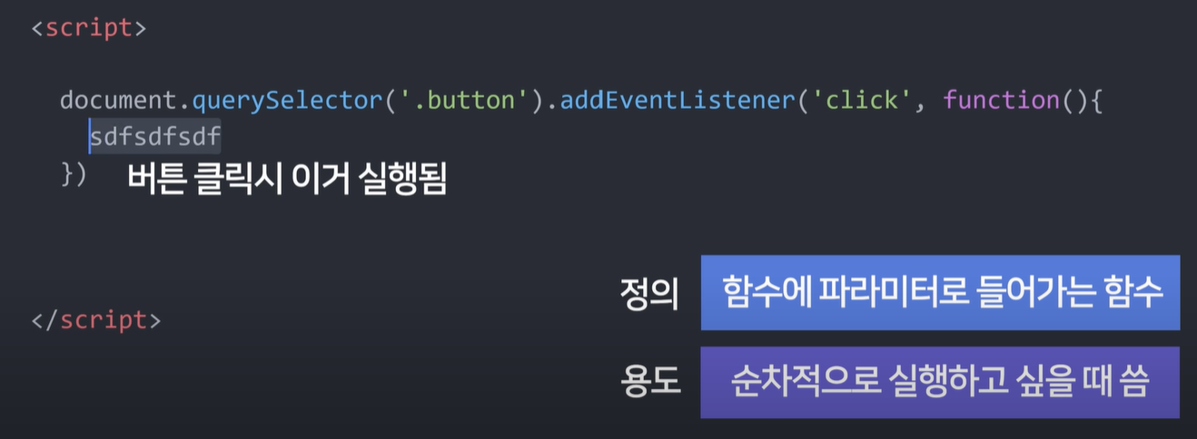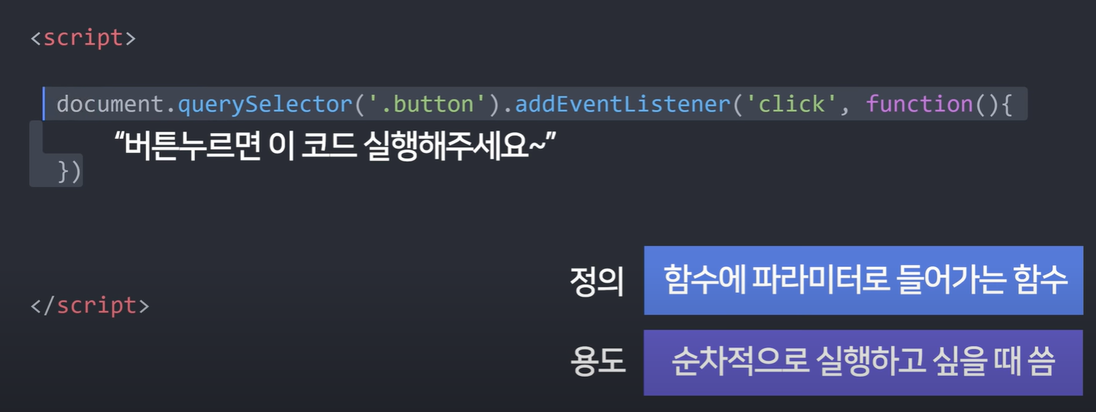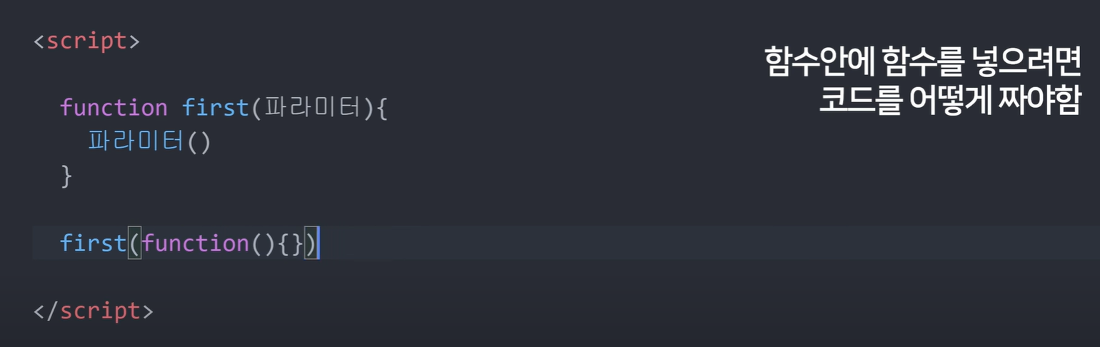 그 파라미터에다가 소괄호 붙여주세요 하고 코드를 짜면, 이게 콜백함수 만드는 법입니다.