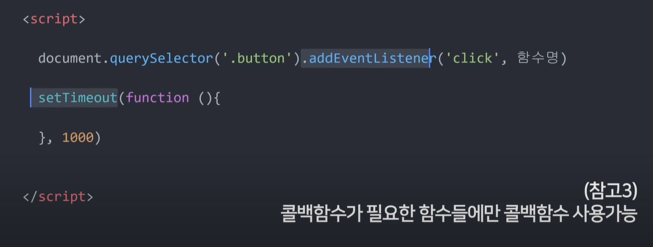 대표적으로 .addEventListener, setTimeout 이런 함수들이 있습니다.