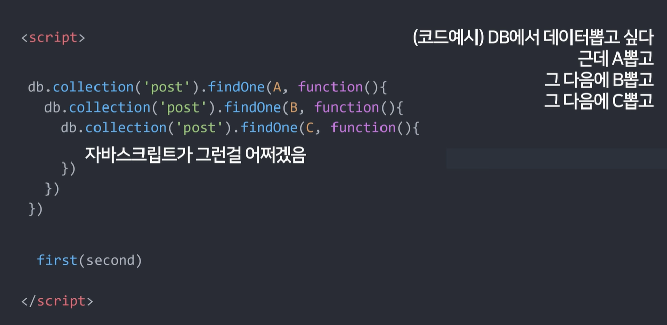 우측으로 길어지는 코드가 싫으면 여러분들이 콜백 함수로 이것을 디자인 해놓는게 아니라,