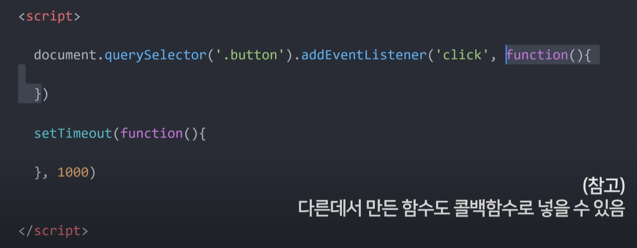 setTimeout 이라는 이런 코드 안에서도 콜백 함수를 실행시킬 수 있습니다.