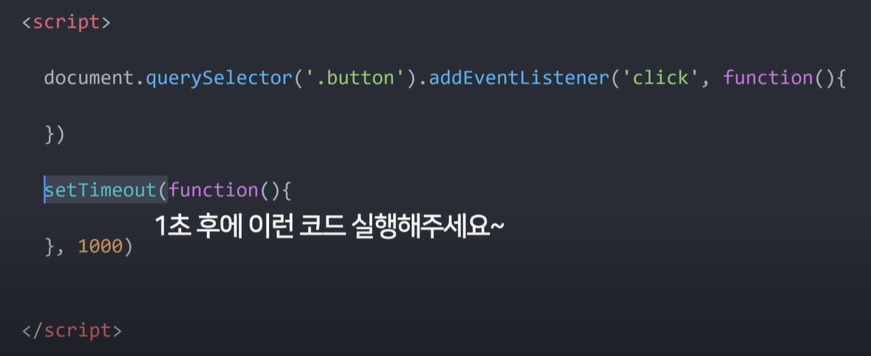 그럼 1초 경과 후에 sdfdsffd 저 긴 코드 실행시킬 수 있는 것입니다.