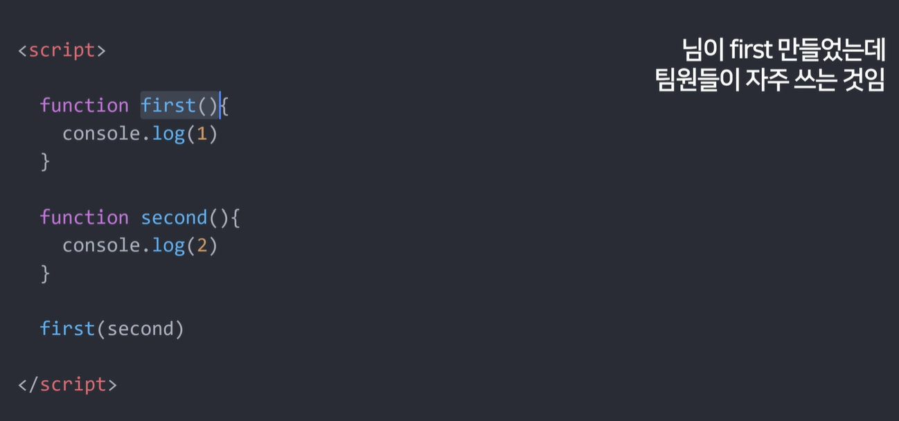 그러면 다른 사람들이 first 함수를 갖다 쓸 때마다 first(second) 이런 식으로 갖다 쓸 수가 있습니다.
