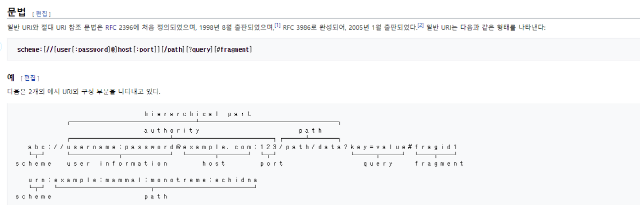 URI 는 특정 문법을 가지고 있어서 그 형식을 주로 따릅니다.