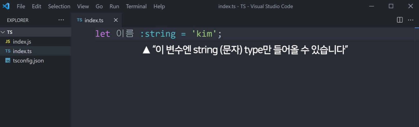 이 변수는 이제 앞으로 무조건 문자만 들어올 수 있습니다. 이런 식으로 타입을 엄격하게 관리할 수 있습니다.