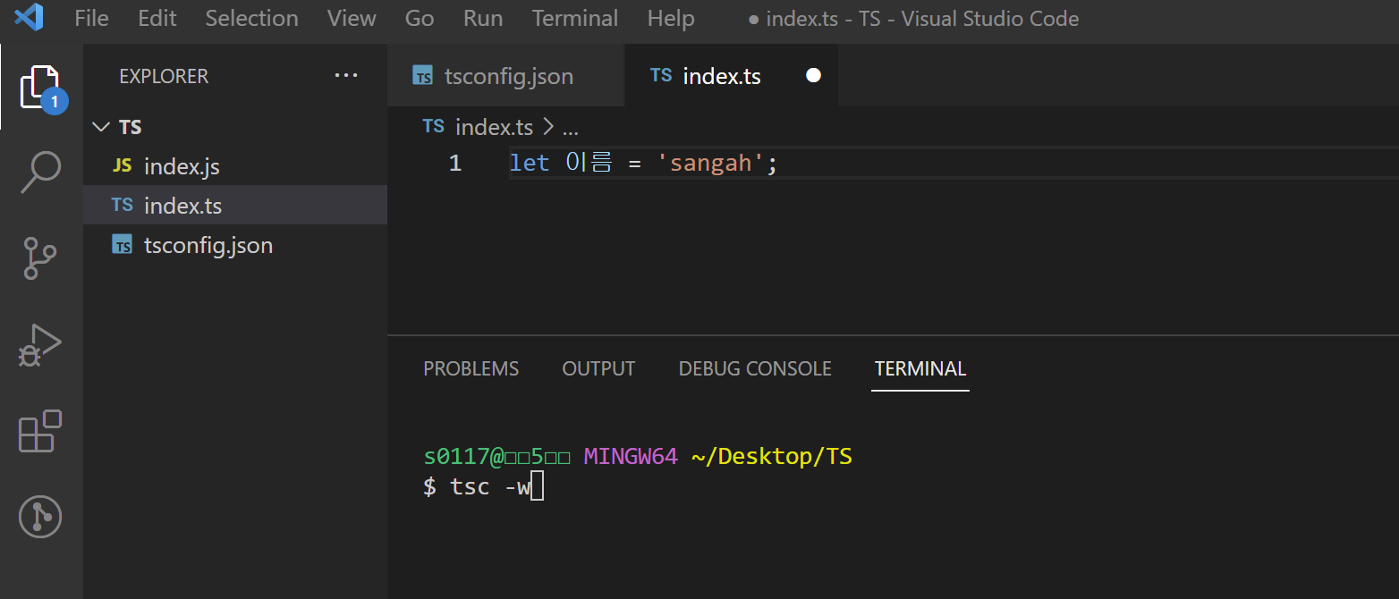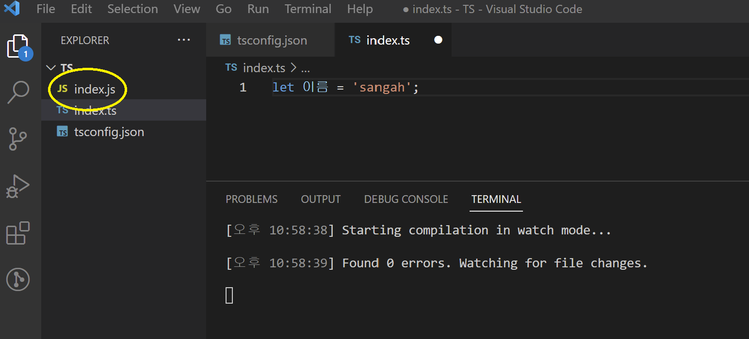 여러분들이 .ts 파일에서 코드 짜고 저장할 때마다 자바스크립트 파일이 새로 갱신이 됩니다.