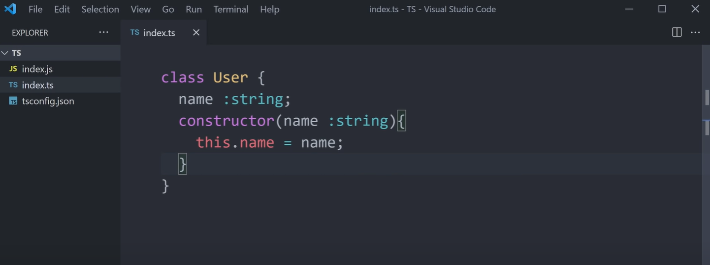 근데 Class는 약간 달라서 미리 변수를 만들어놔야 변수를 갖다 쓰고, 그다음에 this.name = name 이런식으로갖다 쓸 수가 있습니다. 여기다가 변수를 만들어서 미리 타입 지정을 해야 한다는 이런 것들이 살짝 다릅니다.construtor(name :string) 여기에도 :string을 쳐주는게 안전합니다.